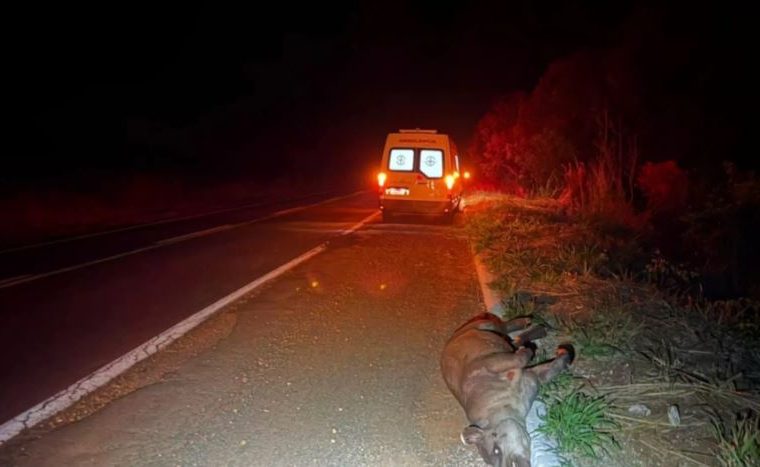 Ambulância atinge anta na MS-134 e passageira fica ferida em acidente