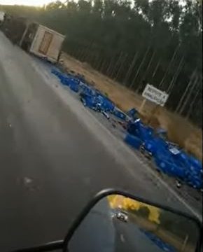 Carregada de cerveja, carreta tomba na BR-262 e…
