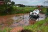 A carreta desgovernada desceu barranco e acabou nas águas que se acumulam às margens da rodovia.