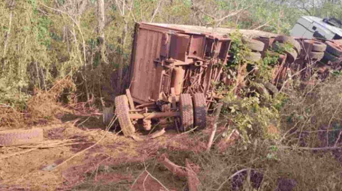 Um caminhoneiro de 48 anos ficou preso nas ferragens neste domingo (10), após tombar a carreta carregada com biodiesel, na MS-306 em Cassilândia. Parte do caminhão foi parar dentro de uma represa.