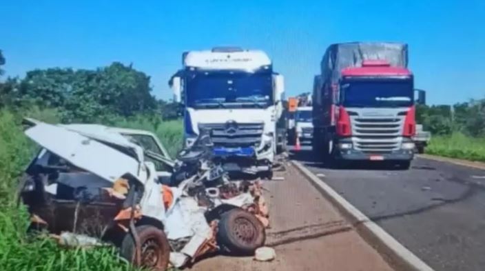 Um acidente na BR-158, em Paranaíba, acabou na morte de uma mulher de 57 anos, nessa terça-feira (2). O acidente envolveu uma carreta e dois carros.