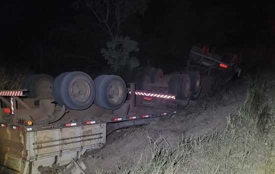 Um caminhoneiro sofreu um acidente na noite dessa quinta-feira (13), na BR-267 em Porto Murtinho, ao desviar de um buraco na rodovia. Ele estava acompanhado de sua esposa e filha. A carreta estava carregada com soja e o acidente aconteceu próximo da…