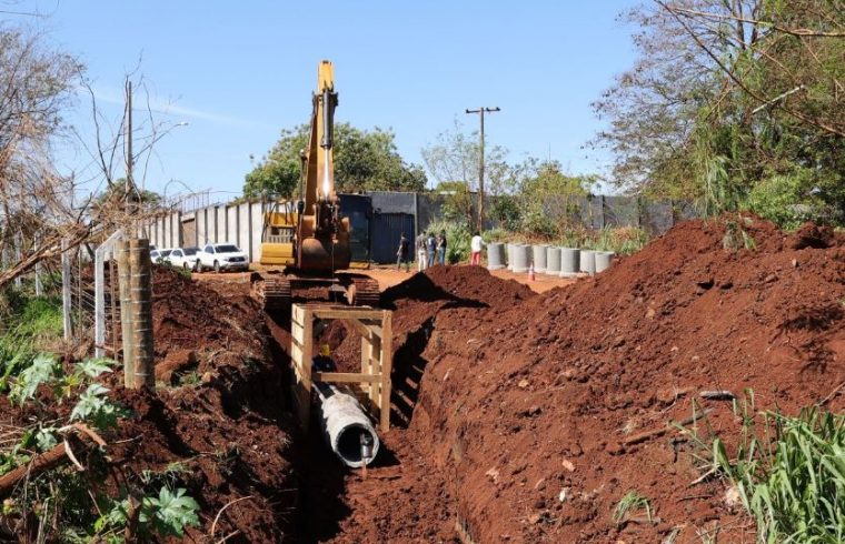 A Prefeitura de Dourados iniciou nesta quinta-feira (23) as obras de drenagem, pavimentação, sinalização viária e calçamento com acessibilidade em parte do Jardim Laranja Doce. Os trabalhos começaram com a escavação para a construção das galerias pluviais na via ao lado da Unei Masculina e fazem parte da melhoria da infraestrutura urbana do bairro.