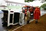 De acordo com o próprio motorista, ele estaria sozinho no veículo realizando quando por conta da chuva perdeu o controle da direção. “ A roda da Kombi travou e eu acabei tombando”, disse. Ele estaria a trabalho e saiu sozinho do veículo.