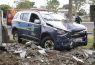 Em perseguição, viatura da PM bate e derruba muro de cemitério