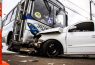 Um motorista bêbado na contramão bateu em um ônibus do transporte coletivo, em Campo Grande, na manhã desta sexta-feira (13), na Rua Brilhante. O motorista fez teste do bafômetro que resultou em 0,77 mg/l. Ele foi encaminhado para a delegacia.