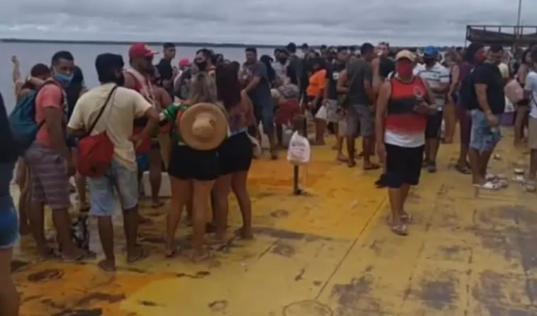 A suspeita é de que os destinos do barco eram as praias da capital amazonense. Muitas das pessoas aglomeradas no local não usavam máscara.