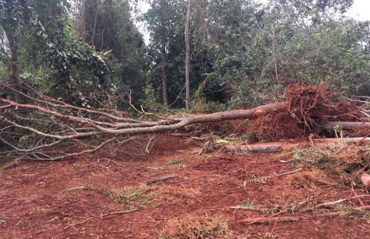 A PMA localizou na propriedade, localizada no Distrito de Bocajá, a derrubada de 15 árvores, sendo 10 da espécie aroeira e cinco das espécies coqueiro e leiteiro, para exploração da madeira, sem autorização ambiental.