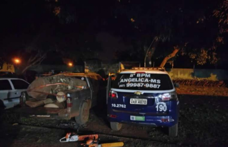 Por volta das 17h, equipe da Radiopatrulha de Angélica foi acionada pela central 190, diante de informações que uma pessoa havia ligado e relatado um furto de 04 motosserras e madeiras de uma propriedade rural, com sede no município de Nova Andradina. O autor teria seguido sentindo Angélica pela BR-141.