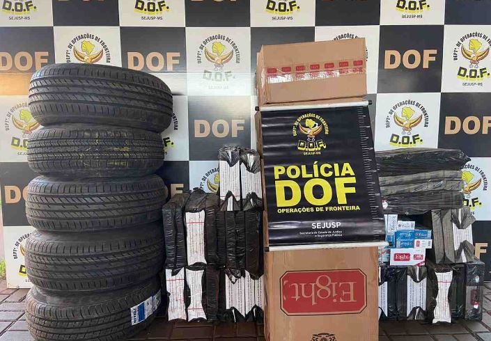 Policiais do DOF (Departamento de Operações de Fronteira) apreenderam, na tarde desta terça-feira (21) , cigarros e pneus contrabandeados do Paraguai. A abordagem aconteceu na BR-463, próximo a Dourados.