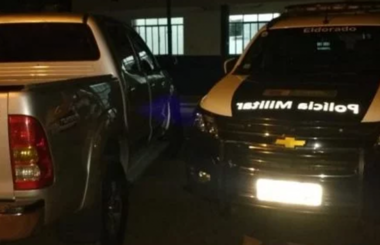 De acordo com o boletim de ocorrência, a PRF (Polícia Rodoviária Federal) de Guaíra (PR) entrou em contato com a PM de Eldorado informando que o veículo roubado no Paraná estaria no município. A equipe então passou a fazer buscas e localizou a caminhonete no pátio de um lava-rápido, às margens da rodovia BR-163.