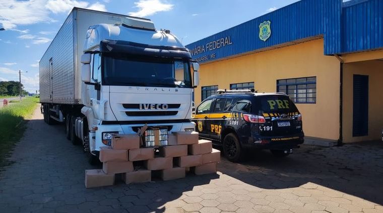A apreensão ocorreu no km 30 da BR-267, quando policiais rodoviários federais abordaram o caminhão Iveco Stralis, conduzido por um homem.