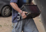 Sem tomar nenhum tipo de atitude, populares perceberam que um homem foi até uma carreta que estava estacionada no Bairro São Bento, em Sidrolândia, a 70 quilômetros de Campo Grande, furtou uma bateria de 150 amperes e saiu com ela nas costas.