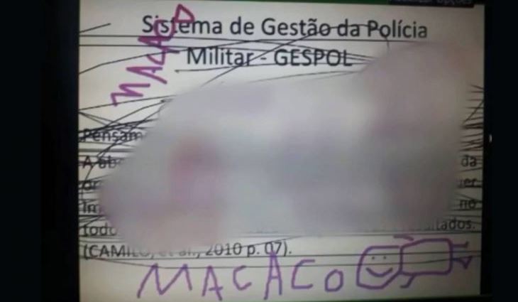 Evanilson foi convidado para falar sobre o tema pois lidera um programa de enfrentamento ao racismo na PM paulista. Enquanto se prepara para a apresentação, Evanilson teve seus slides invadidos e foram depredados com rabiscos e a palavra “macaco”.
