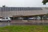 A Chuva que durou cerca de 20 minutos causou estragos em bairros de Campo Grande, na tarde desta quinta-feira (3). O vento forte derrubou parte de um telhado de um posto de combustível localizado na Avenida Mato Grosso, no Carandá Bosque.