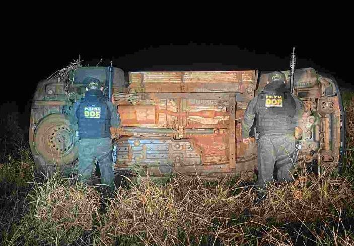 Já o condutor da SW4, que vinha logo atrás, retornou bruscamente assim que viu a abordagem policial e, cerca de 10 quilômetros depois, os policiais localizaram o veículo capotado. Foram realizadas buscas nas imediações, porém, nenhuma pessoa localizada.