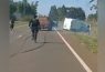 Imagens mostram quando o casal de traficantes é perseguido pelos policiais. O veículo em que estavam, um Fiorino, acabou com os pneus estourados durante a fuga. Com isso, o carro rodou na pista e acabou gerando faísca nos pneus, começando um incêndio na vegetação que estava às margens da rodovia.