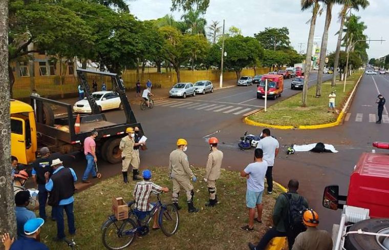 De acordo com informações iniciais, a motocicleta Yamaha MT 300, de cor prata, placa QAC-CF04, seguia na Marcelino Pires e o caminhão, modelo MB amarelo, placas HQG-9B44, na Rua Dom Pedro I. O motorista do caminhão, de 70 anos, cruzou a preferencial e colheu a moto.